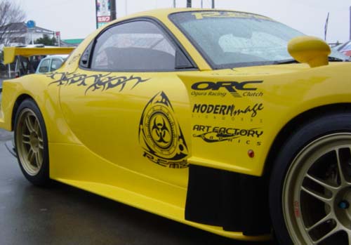It is the new rotary sticker on the roof,side and near the front light of the car. It is like a rotor with a biohazard logo in the middle :p