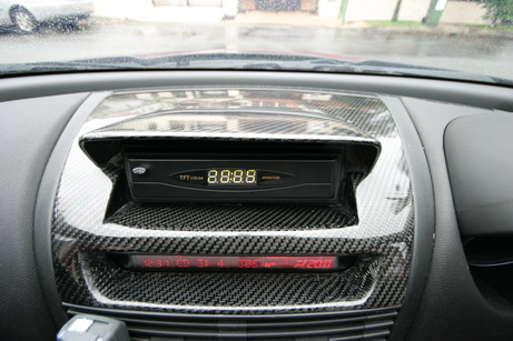 So the original Center Console was remove , cut , a Din holder was fabricated using Carbon fiber over the original plastic console.