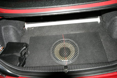 Theres a "hole" of around 13cm deep in the car boot and this can be use to store a woofer. but the problem is most woofer in the market is very BIG.
