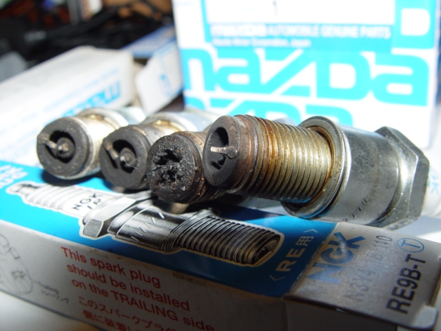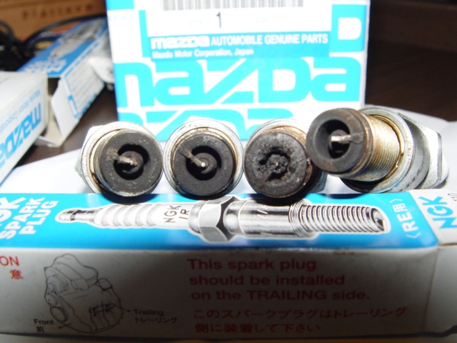 I just changed my plugs to the new style at 20,000 km, the original one looks exactly like yours but the condition was actually OK... looks like yours fuel and oil was not burned properly. I have also changed the spark plug to autoexe sport plug, clean the trottle, check the coil... all in order. The car is even more responsive now ;-)