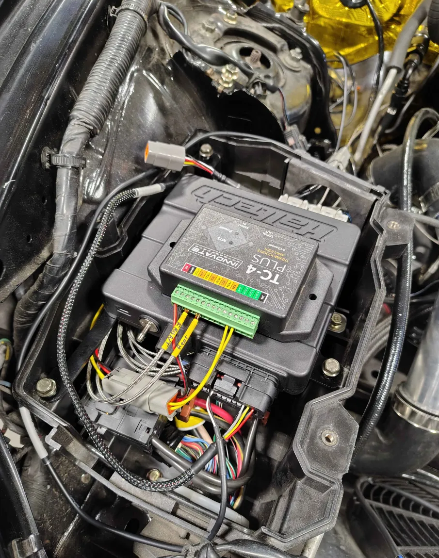 I have re-re-pinned the ECU for the Haltech and updated a lot of my google sheet. Everything fit perfectly, but the wiring was completely different than the Adaptronic so basically everything was undone and redone. The Haltech has about an inch or more between it and the power steering and there is alot of room above it too so I was able to fit the Innovative EGT kit above. I do plan on sealing up the box to keep things clean, but the worry of airflow cooling vs dust/fluid is the tossup. For now I will just monitor the temp in the box.