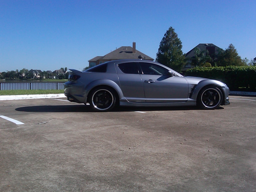 I posted these in my thread about gettin' new shoes... but I figured I'd throw them in here too since I haven't contributed to the ti-gray thread in a while. My car was dirty, I know... just wanted to snap a couple pics with the new rims/tires.