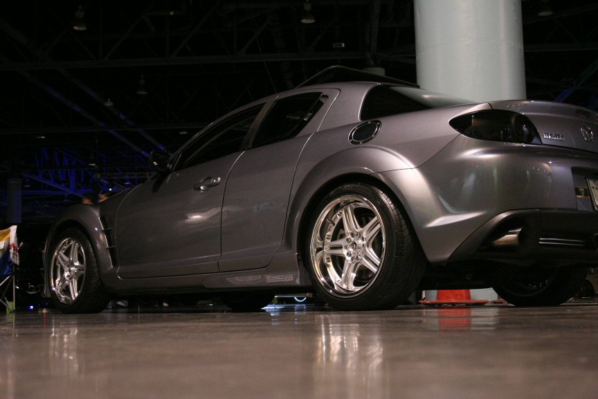 Here is the latest incarnation of mine, now that I am on my 4th set of wheels, finally got the hood, mirrors, rear end, and wing done and most importantly, got clear corners installed yesterday!!! YAAAAAYY!!! Cripe, I gotta be the last guy in the USA to get JDM corners. Oh, and yes the gay-*** (but great sounding) Agency Power exhaust is melting the **** out of my $500 modified stock rear bumper, even though I raised the exhaust and installed $200 Mazda exhaust finishers. Photoshop for the rescue on that photo. I just noticed it was toast when I was editing the pictures...dammit.