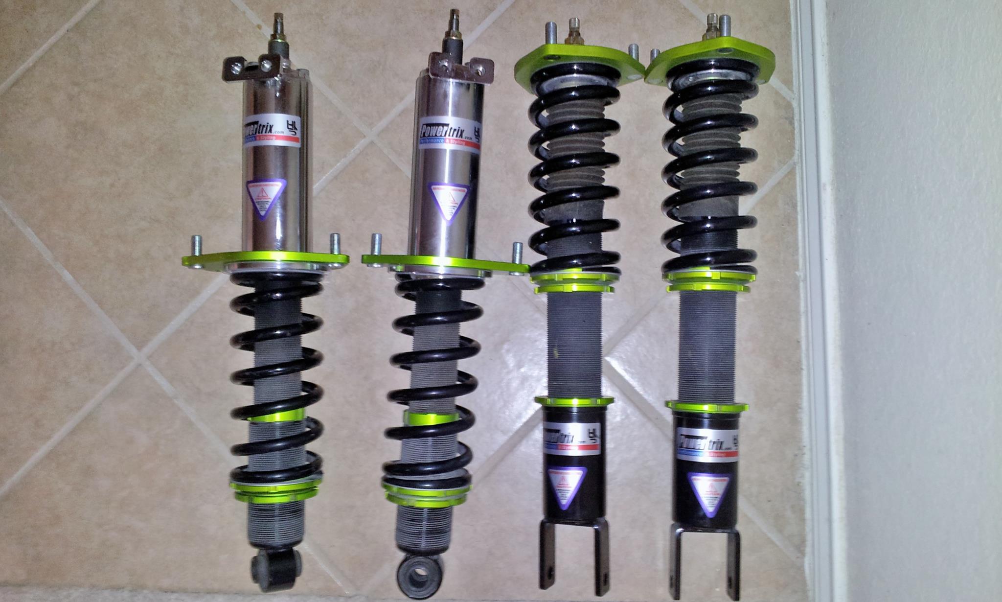 Powertrix Coilovers for sale: 10k/7k spring rate, 16 way adjustable. $750.00. Still have the original box. Installed for ~10 months/~10K mi on them. Price+Shipping available from San Antonio, TX 78253. Swapped to stock to sell the car.