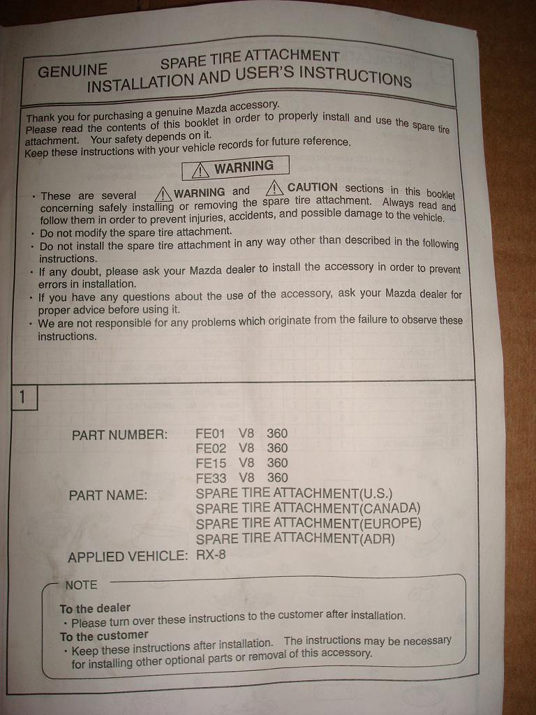 Genuine Mazda OEM Spare Tire Mounting Kit with 17" Rim (no tire) for sale, brand new, still in box and plastic (see pics). Asking $200 (shipping included). This part fits all RX-8s. The rim fits a T125/70D17 tire that is only good for putting on the front. (If you flatten a rear tire you'll have to move a front one back and put this on the front.) We added this accessory when we purchased our car back in Feb. and just decided we didn't want it anymore. It was never installed in the car and has only been removed from the original box for the photos. This part goes for $395 (with tire) from the dealer so be assured that $200 is a fair deal.