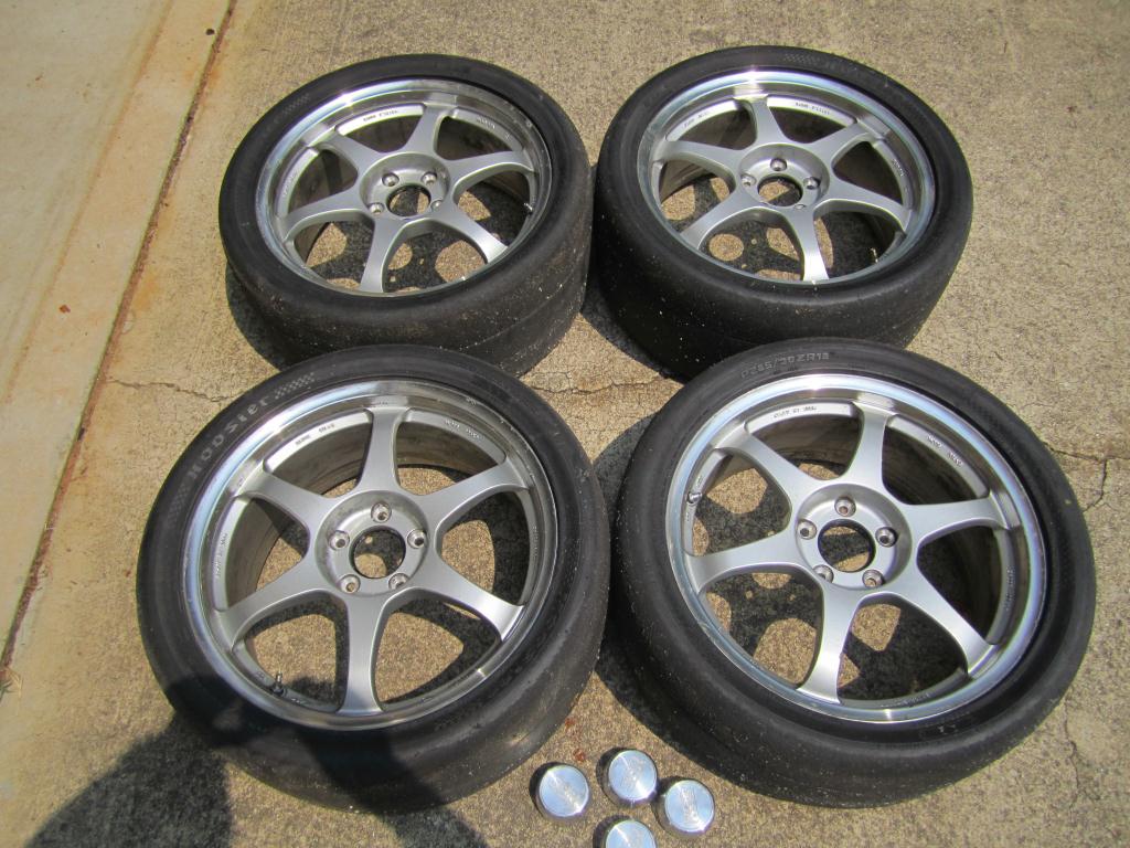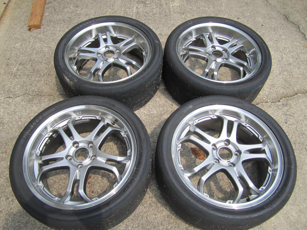 4 SSR type C's (the super light ones ~16lb) RX-8 fitment 5X114 18X8 +48mm with ~60 Run Hoosier A6 285/30-18 -Sold