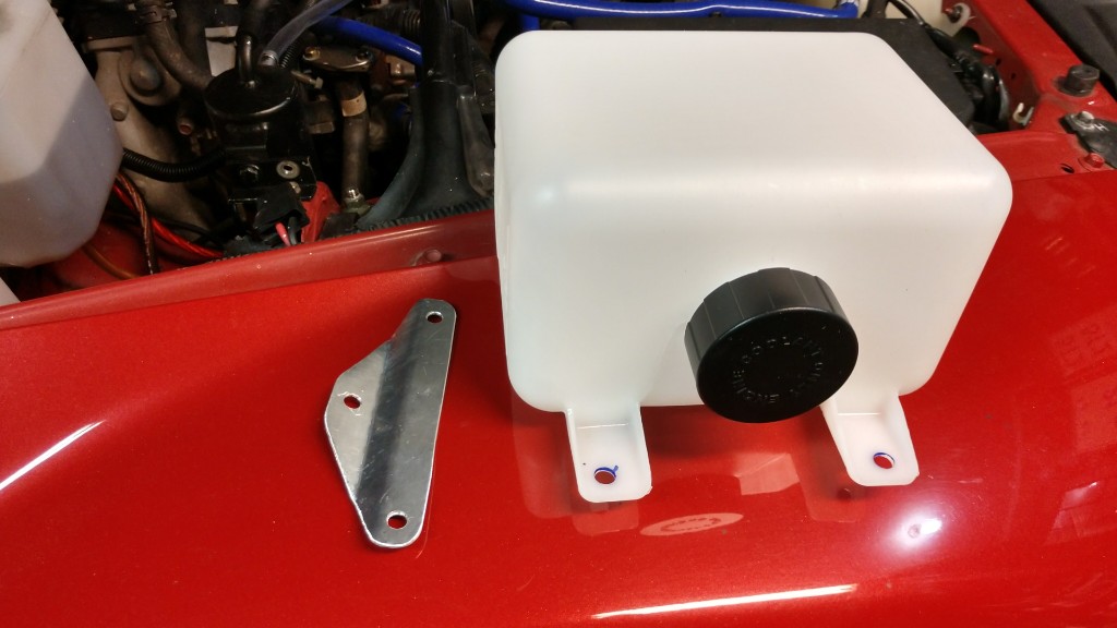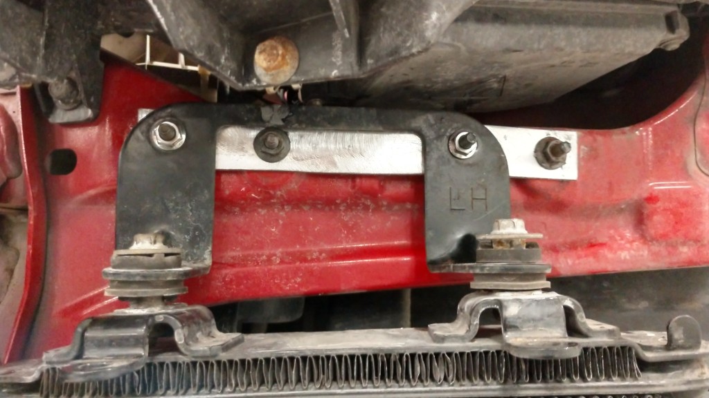 Since removing the fog lights leaves lots of empty room, I made a simple bracket to move the oil cooler over by 2", to get more air to it. I just loosen the rear bracket and move it as needed.