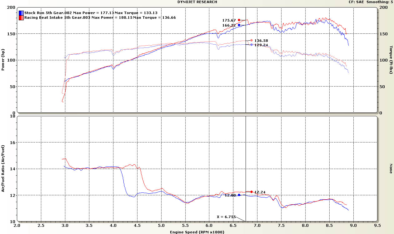 You are looking at this dyno sheet wrong, yes you may pick up 3 peak hp but that is not what you should be looking for all the time, there is a place on that graph that they have pointed out where you are gaining 9hp and 7tq, that is the real gains. Remember it is the area under that curve that matters, not always the peak. By the way I don't have this intake just pointing out what I have learned.