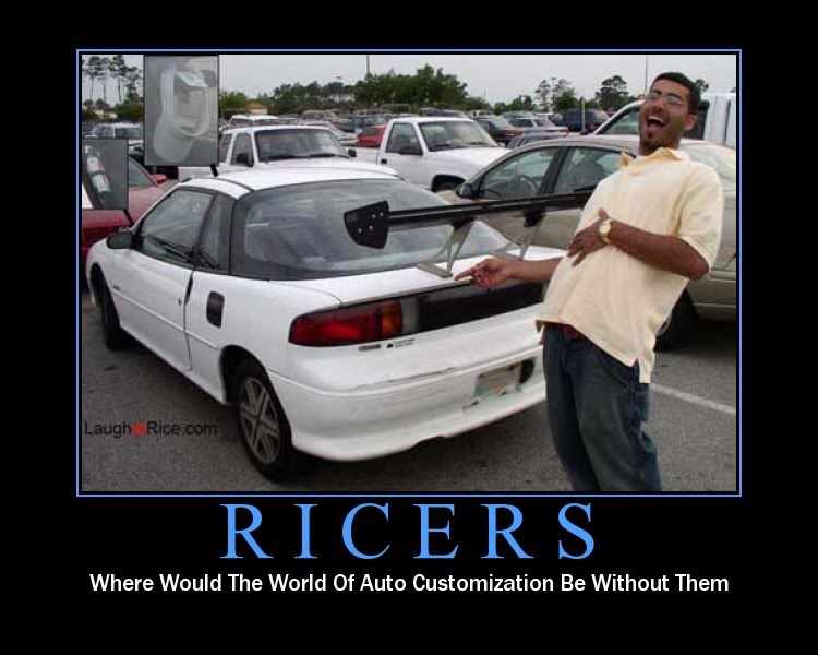 When I think of ricer I think of poorly fitted wide body kits, neons and candy orange paint.