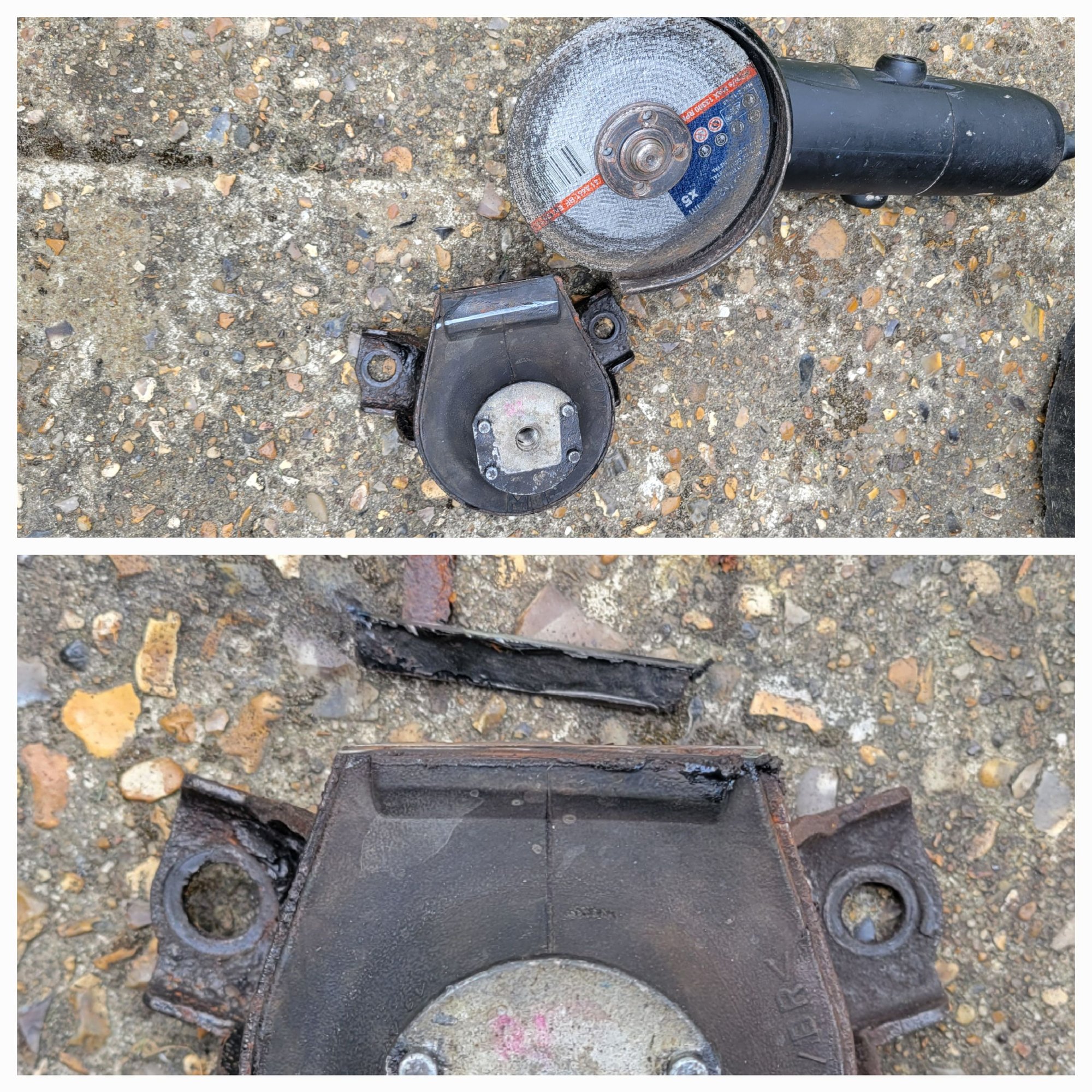 Forgot to mention that removing the engine mount tab and moving the brake line frees up much needed space when trying to fit the turbo. I used a reciprocating saw to remove the tab and trimmed my stock mount by 8mm to fit Brett's custom engine bracket
