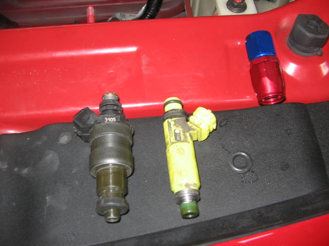 And a picture of the new injectors vs. the factory one.........