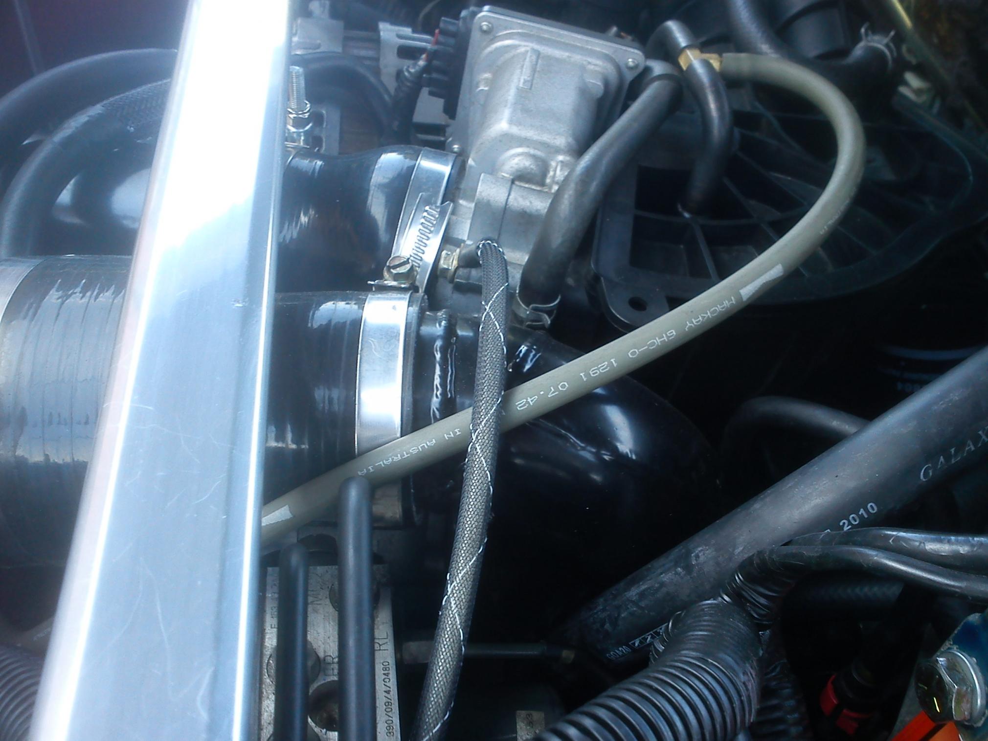 -Spliced MAF sensor wiring to redirect IAT sensor to after IC before throttle
