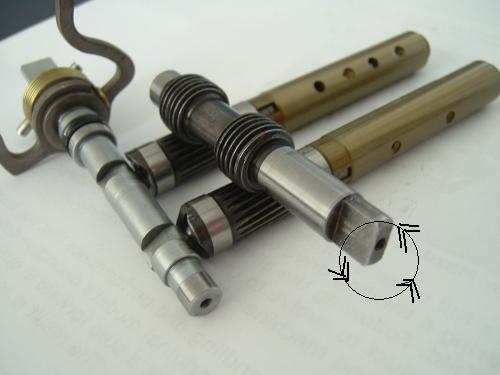I had thought the small button on the bottom of the gear shaft was actually the end of the valve that protruded through a hole in the gear shaft. However it now appears that this is not the case, and the buttons are in fact part of the gear shaft. So this is what I think we know so far: