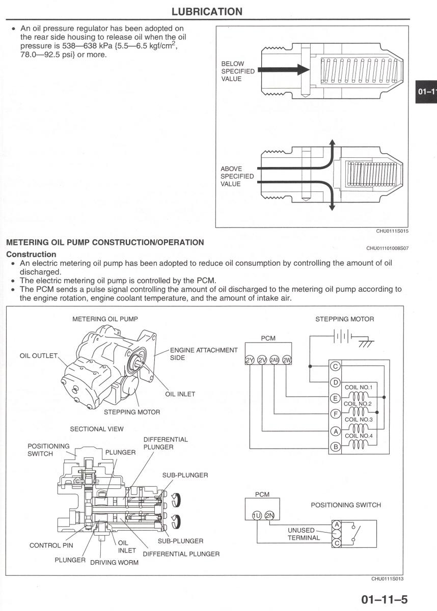-There is no benefit, or possible harm, to using a separate oil reservoir for injecting more 'suitable' oil. I have looked for but have not found anything that could be called scientific evidence as to its effects. One area I have been concerned with is the pressure needed to fill the cylinders, particularly at the cold temperatures (high oil viscosity) where I live. This pump has very little capability of sucking in oil. I asked Richard about this pressure and he responded with "This pressure has not been measured, however, the oil enters the OMP right at the outflow of the oil into the oil pan. This can only be visualized on the actual hard ware, since a real picture of it does not axist to my knowlege". I may eventually attempt to measure this pressure and do some bench testing at different temperatures to see how oil flow is affected.