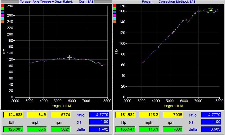 I hear you on the spanking. I suspect this car has not had much of that before the start of my stewardship and I rarely rev it that much during my DD. The first run on the dyno was noticably lower in power than the following 3 and did eject a little bit of dark smoke. I am going to have it on track this weekend so that should clear it out, or kill it if my ignition fails