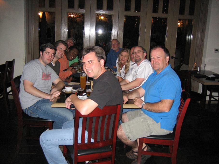 We arive at JT Schmidts and some people are already there. But who? Here's a picture of the first group. Going clockwise, in front in the black shirt is me, to the left is Ajax, Brillo, Paul (Mazmart), Dr. Francesco Ianetti, Rick Engman, Nina Lopez, Carlos Lopez (barely visable), zoom44, and danobre.