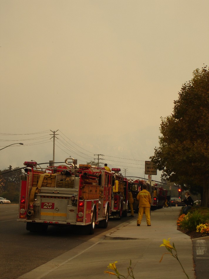 I live in Oak Park and I could see the fire from my room upstairs, we had the option to evacuate voluntarily but we just stayed and luckily the fire changed directions. Heres some pics I took this morning down the street, you can't really see the fire but its there. Hope it all ends soon.