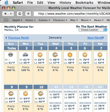 Here's the weather forecast for this weekend. (a/o 1-2-06)